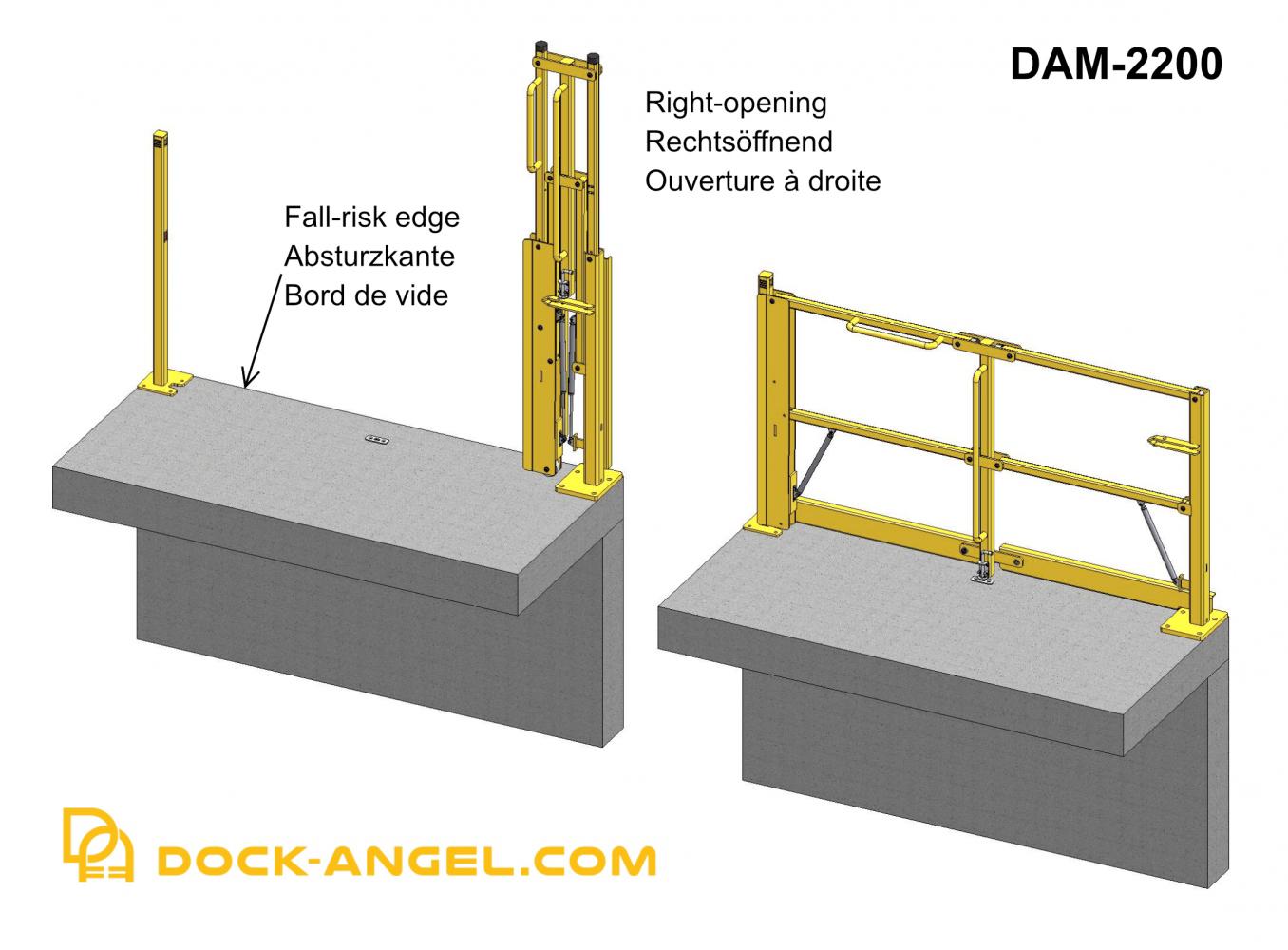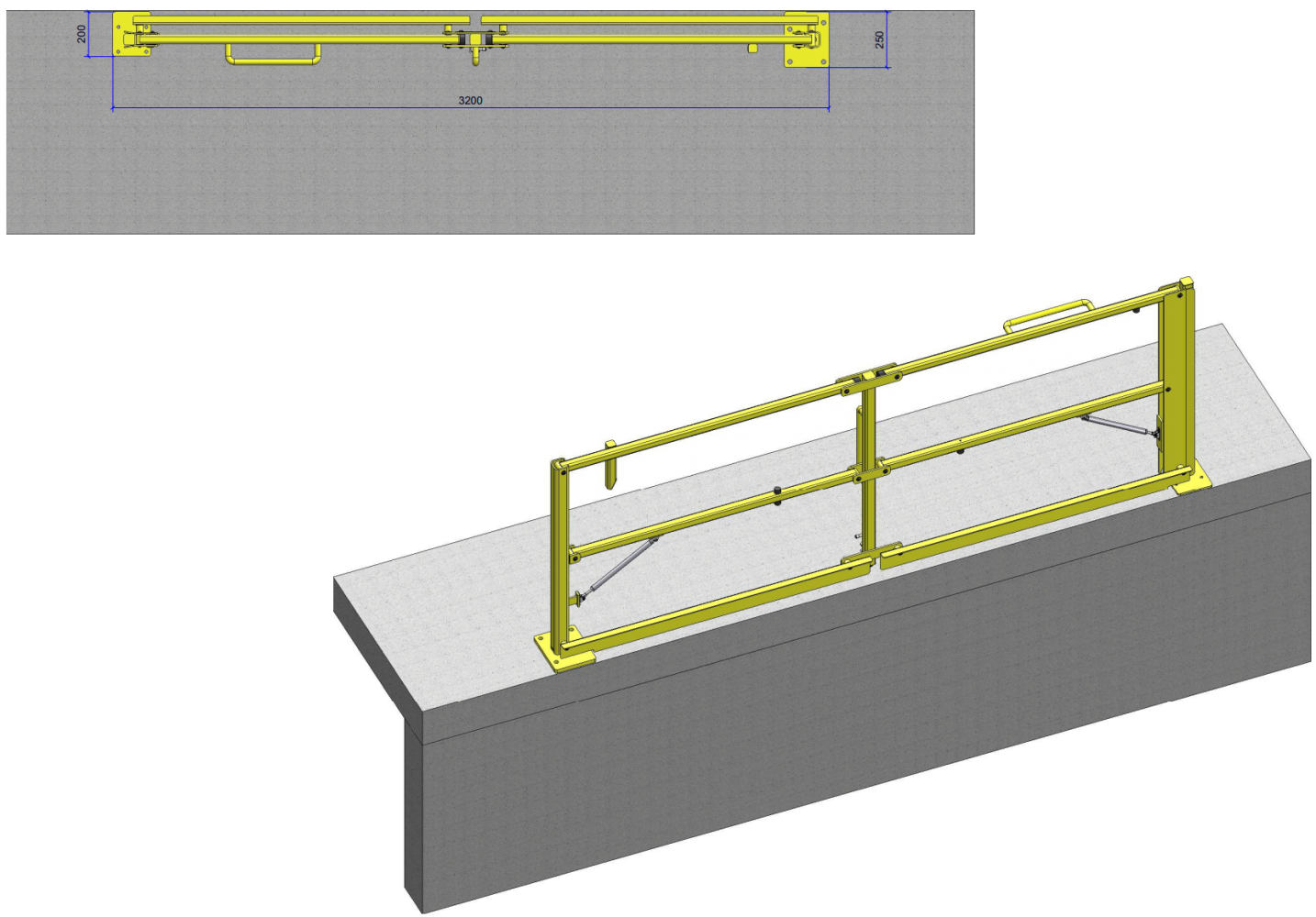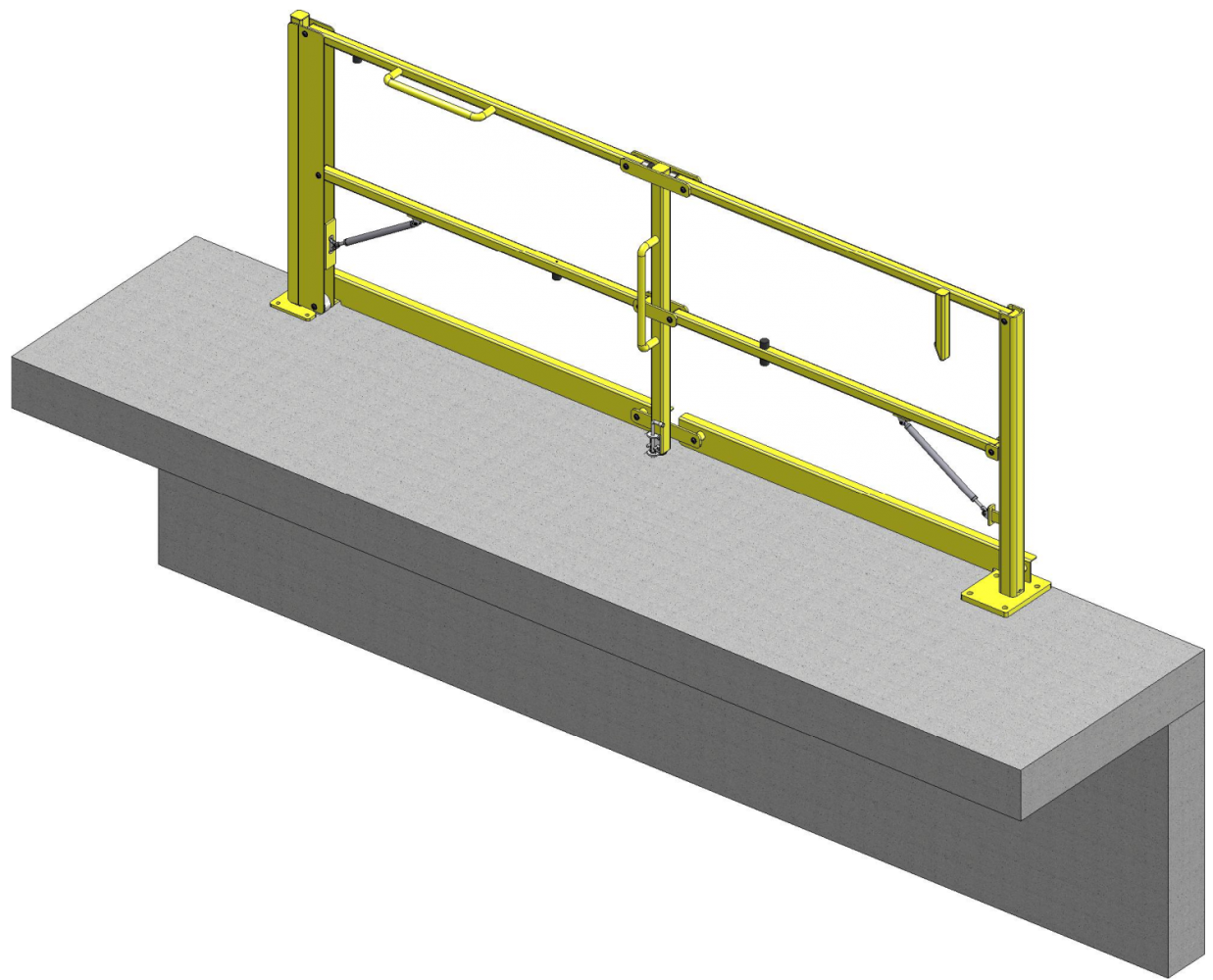 Sicherheitsschranke DOCK ANGEL mit Gasdruckfeder, Handlauf, Knie- und Fußleiste.