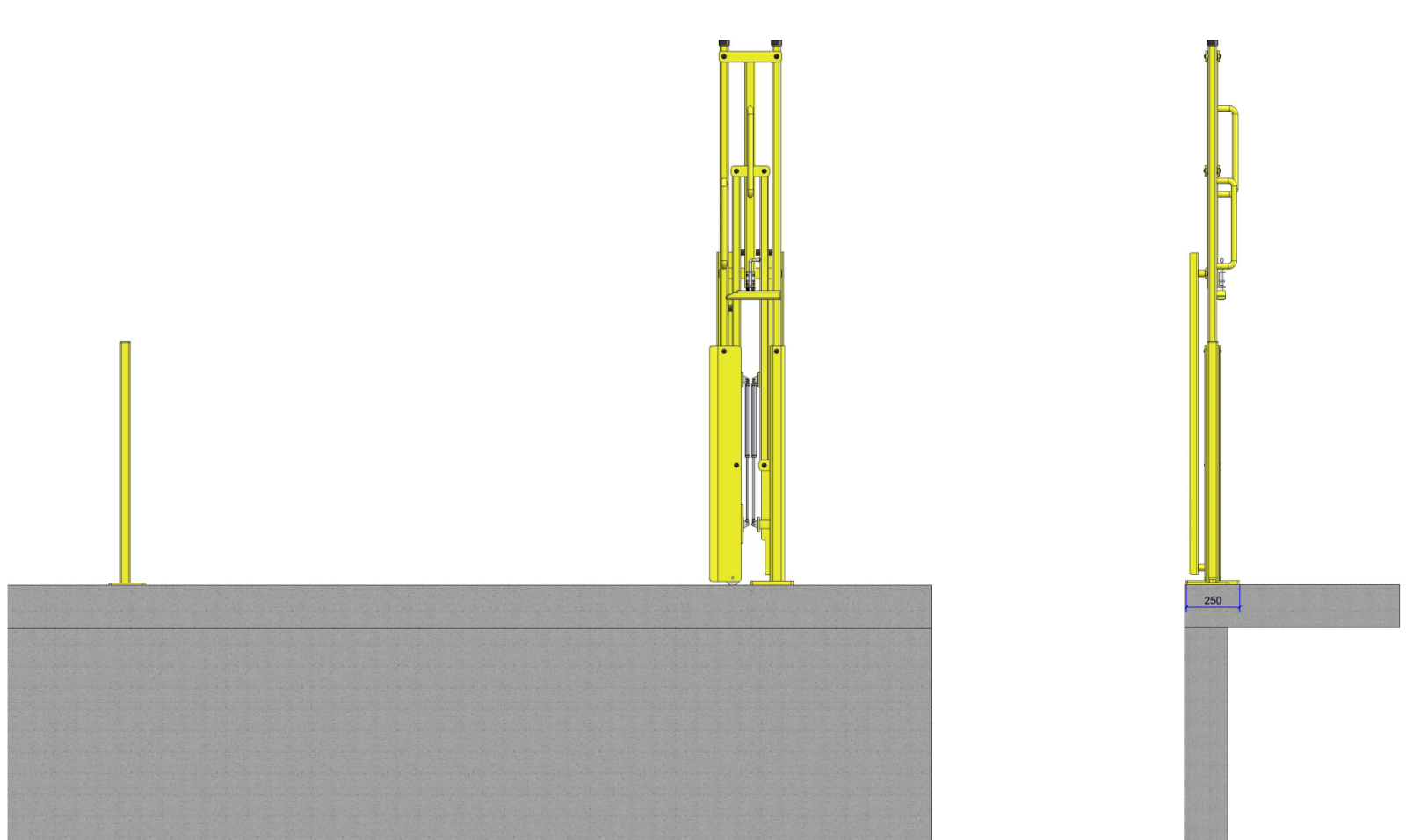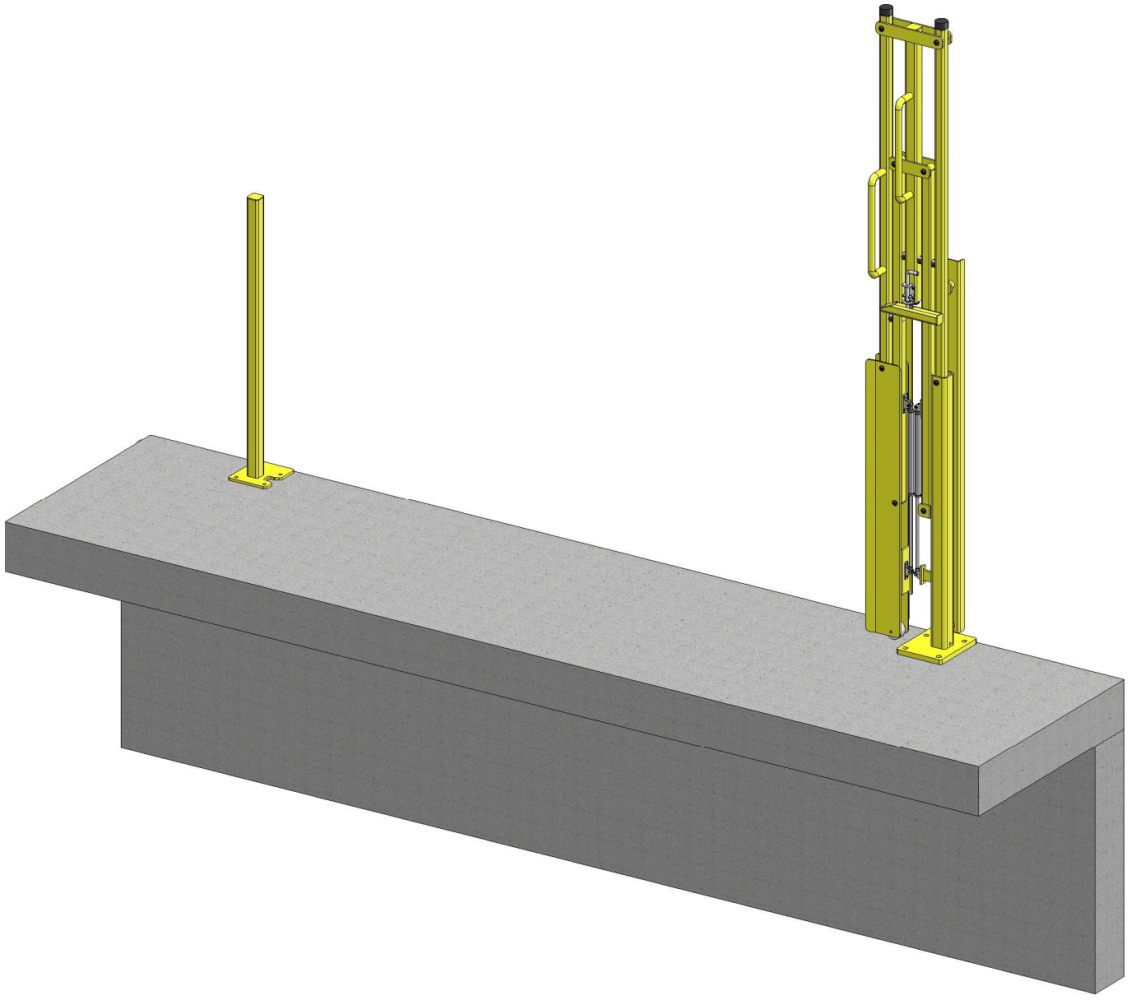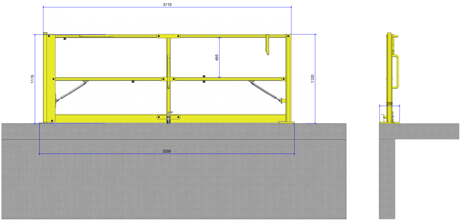 Sicherheitsschranke DOCK ANGEL mit Gasdruckfeder, Handlauf, Knie- und Fußleiste.
